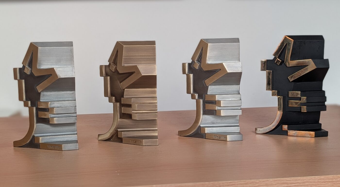 Today we celebrate our first cohort of notable developers. Below are this year’s recipients of the Firefox Extension Developer Award, presented to developers of some of the most popular Firefox extensions. The bespoke metal trophies were designed by Alper Böler, a California-based industrial designer and artist.