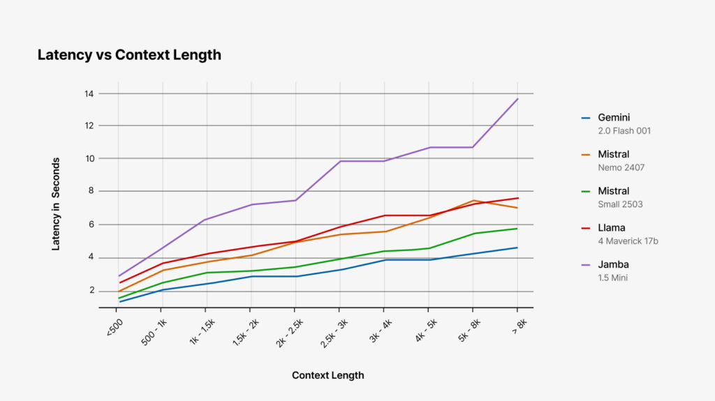 Keeping the above in mind, we selected the following models for our initial evaluation: Mistral Nemo, Mistral Small, Jamba 1.5 mini, Gemini flash 2.0 flash and Llama 4 Maverick – all of which were hosted on Vertex AI. Note: this project began in early 2025