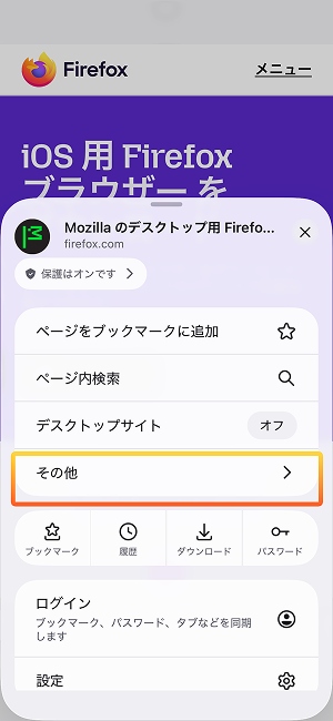 - Mozilla アカウントにログイン後、[…] をタップし、自分の名前をタップします。