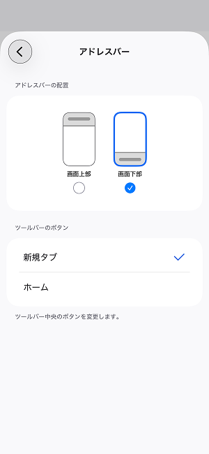 ヒント:片手操作をしやすくするなら、アドレスバーを下に設定するのがおすすめです。