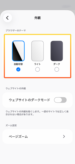 - [自動切替]、[ライト]、[ダーク] から選びます。