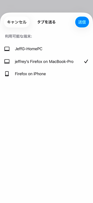 タブを別のデバイスへ送る