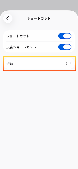 - [広告ショートカット] のスイッチをオン(右)/オフ(左)に切り替えます
