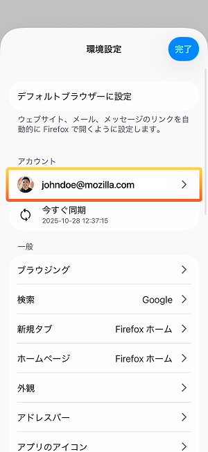 Mozilla アカウントを設定
