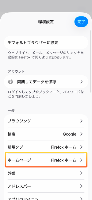 - [ホームページ] をタップします。