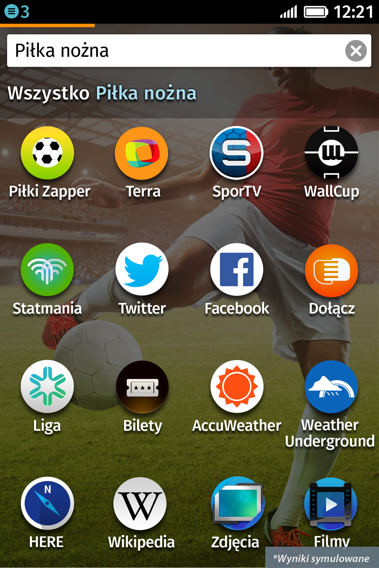 Gdy korzystamy z adaptacyjnego wyszukiwania aplikacji, nie wyszukujemy aplikacji jedynie w telefonie, ale również w Mozilla Marketplace oraz w Internecie. Nie trzeba znać nazwy konkretnej aplikacji, wystarczy wpisać to, co nas w danym momencie interesuje, np. : „piłka nożna”.